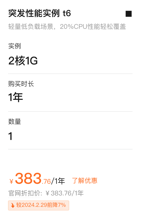 相关服务: 天长ECS突发性能t6费用